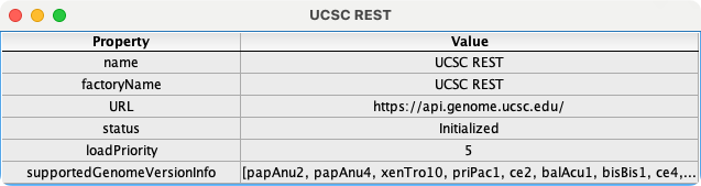 - The data listed in the Value column are specific to the UCSC REST data source.