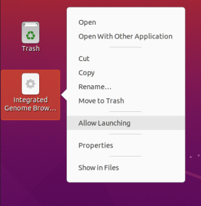 Some versions of Ubuntu may require an additional step to enable the IGB desktop icon.